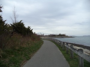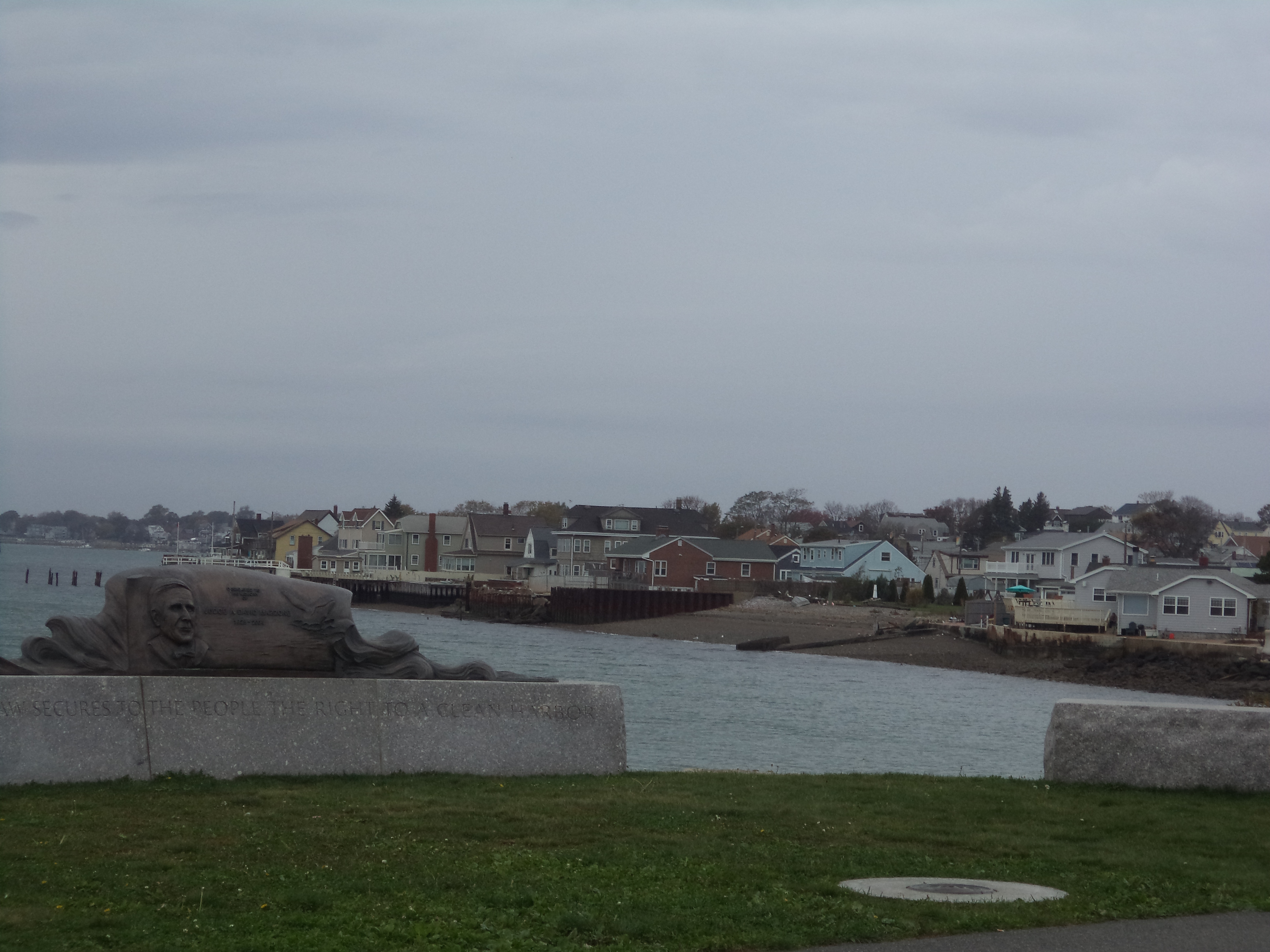 According to Wikipedia, Deer Island has become a physical extension to Winthrop since 1938 when The New England Hurricane filled the Shirley Gut Channel that separated the island from the land. So, it is technically a peninsula that still goes by its old name when it was an actual island. That is how I found it when I visited it this October, 2017. I boarded a bus from Orient Heights T. Station and got off the last stop. Shirley street narrows into a neck that connects the Island from both waterfronts to the main land. The area filled me with awe and enchantment; there was a strong gothic aura attached to it. As I stepped in behind the gate alone, I headed east along the walking trail that surround the small island. A line of benches with names of dead women inscribed on each. I sat on one of these and stared at the dense dark gray clouds that embraced the chill hovering on the cold salty waters. I shuddered a little bit, stood to my feet and decided to tour the island. I stopped mid way as I felt myself overwhelmed by a feeling of doom; places as beautiful as these are mostly walked in company and I was all alone. I asked a women who was jogging with her young boys to take a picture of me. I decided to head the other direction. The right trail to the island offers a wider variety scenery; I could seeEast Boston, The Boston Harbor and many scattered islands.